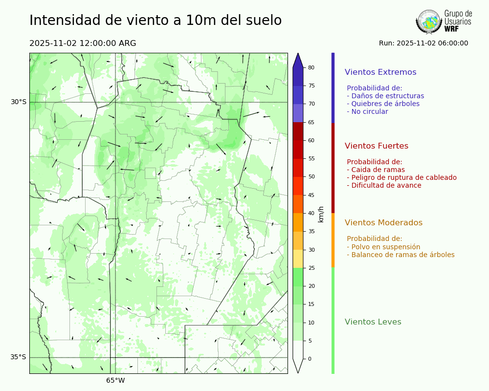 • Intensidad máxima: 8.35 km/h (02/11/2025 20hs.)