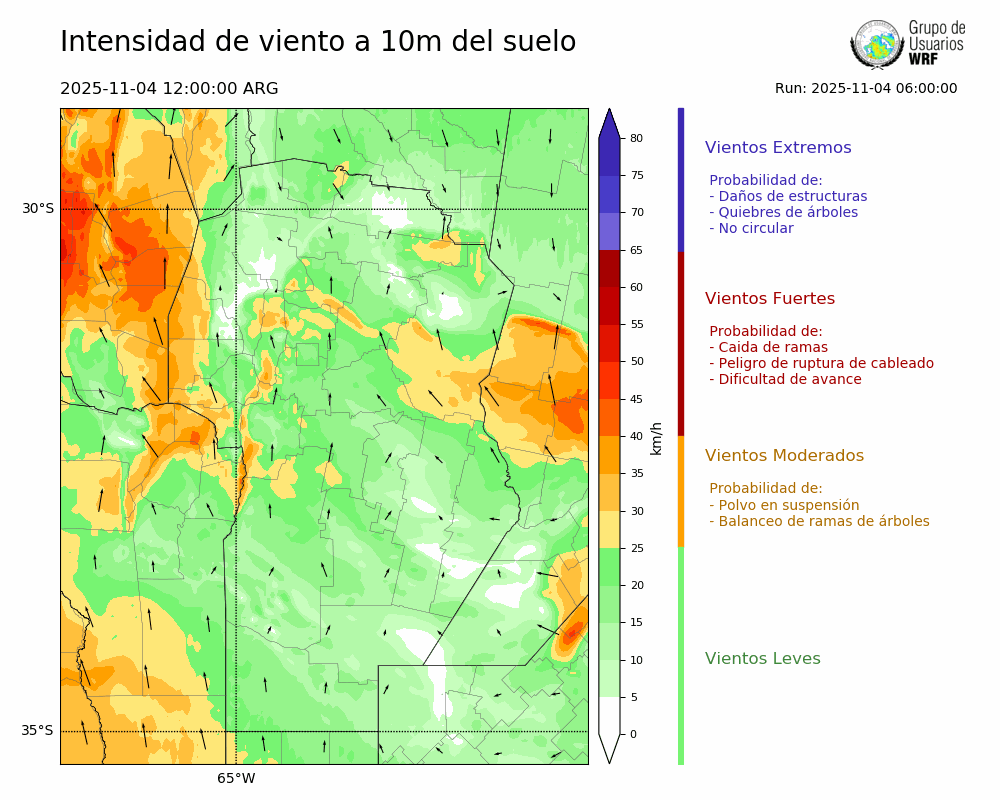 • Intensidad máxima: 26.57 km/h (04/11/2025 15hs.)