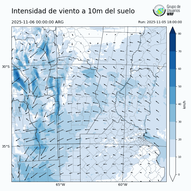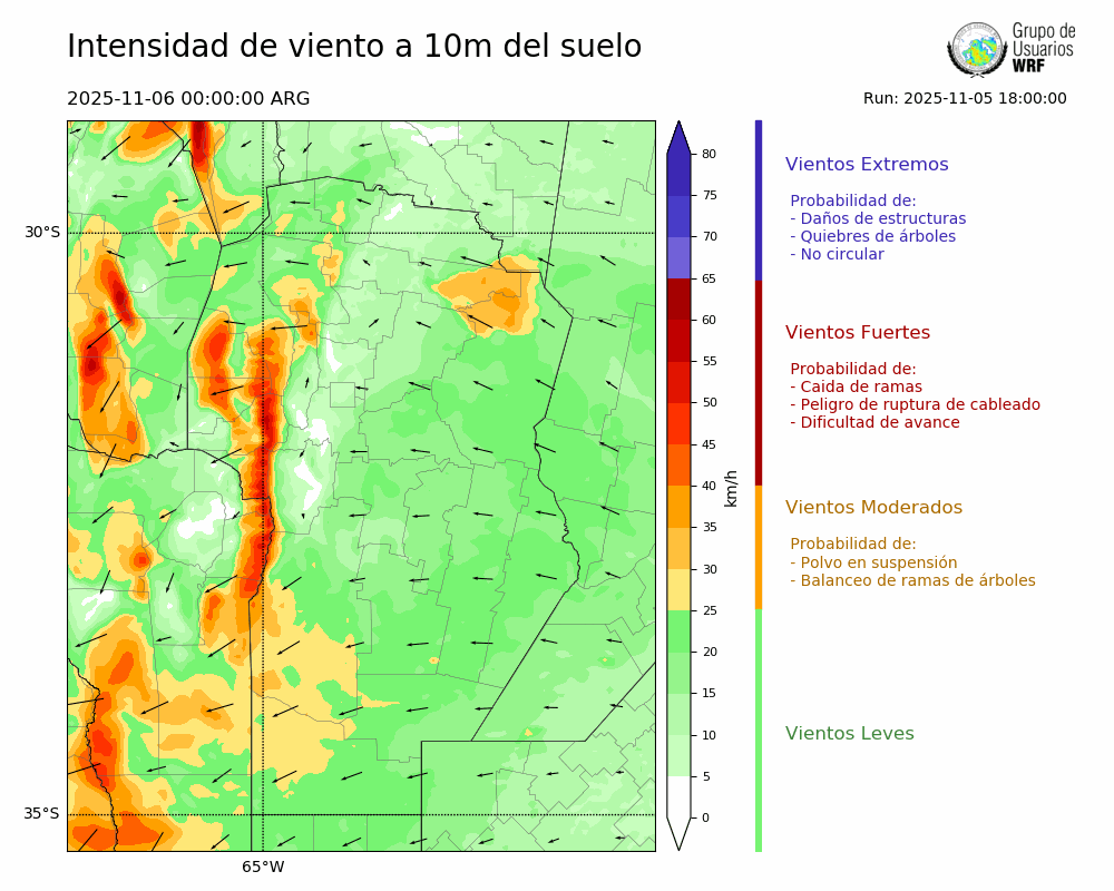 • Intensidad máxima: 19.09 km/h (06/11/2025 11hs.)