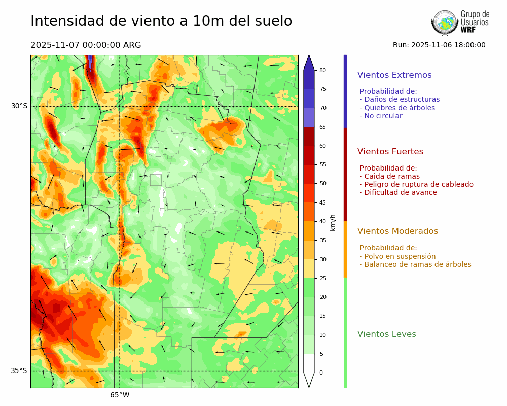 • Intensidad máxima: 19.41 km/h (07/11/2025 08hs.)