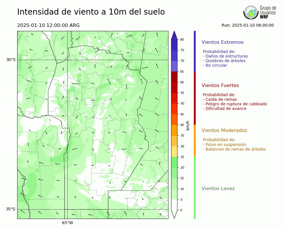 • Intensidad máxima: 13.72 km/h (10/01/2025 22hs.)