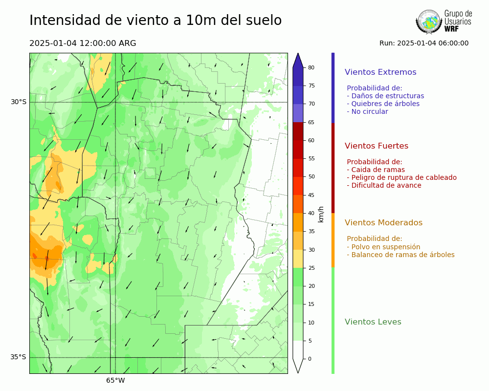 • Intensidad máxima: 17.38 km/h (04/01/2025 12hs.)
