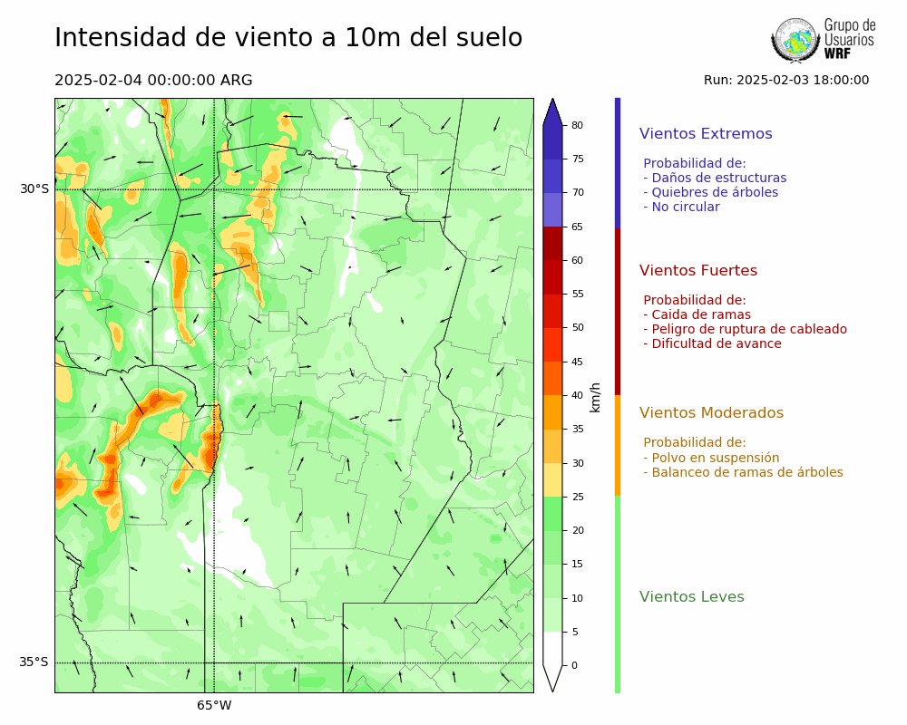 • Intensidad máxima: 12.57 km/h (04/02/2025 09hs.)