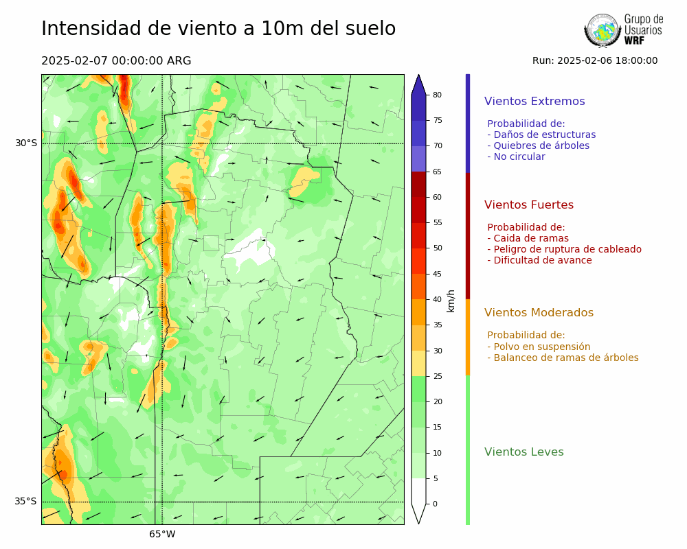 • Intensidad máxima: 17.15 km/h (07/02/2025 11hs.)