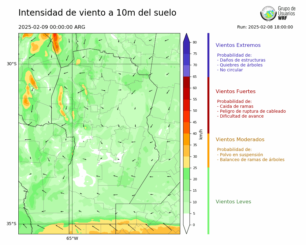 • Intensidad máxima: 7.34 km/h (09/02/2025 23hs.)
