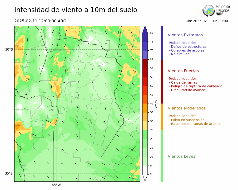 • Intensidad máxima: 15.38 km/h (11/02/2025 20hs.)