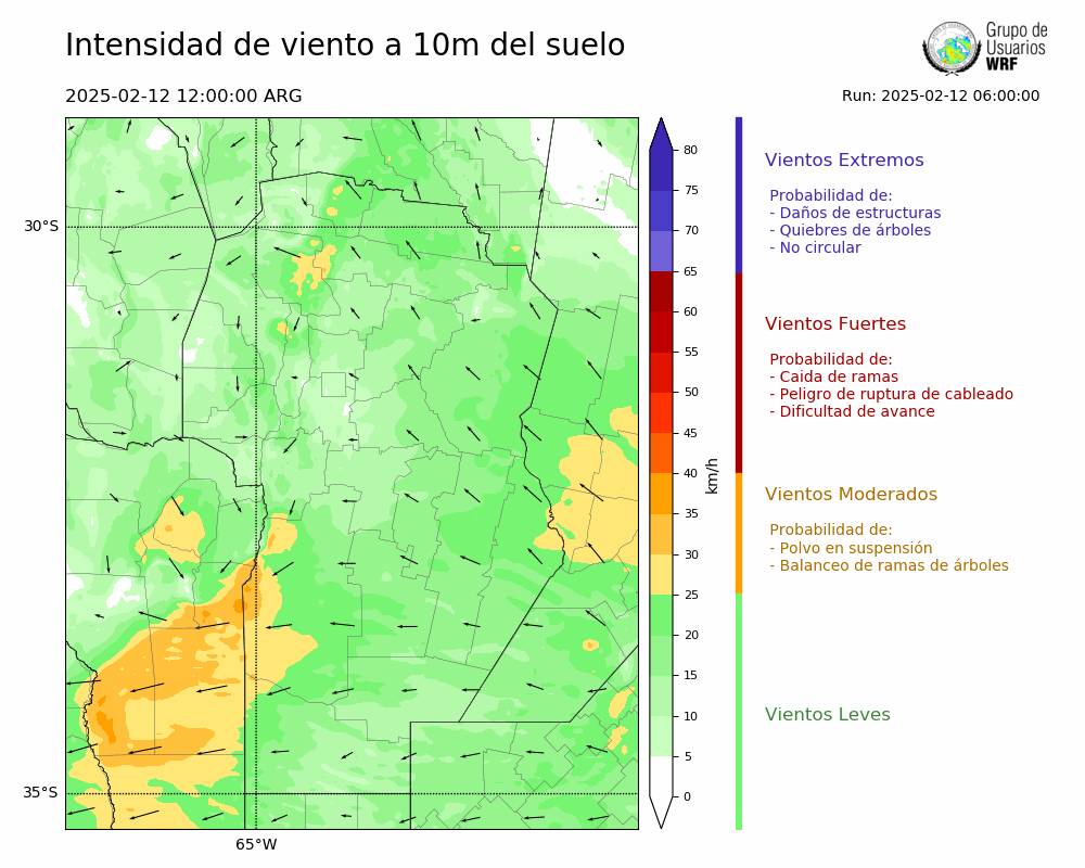 • Intensidad máxima: 18.37 km/h (12/02/2025 17hs.)
