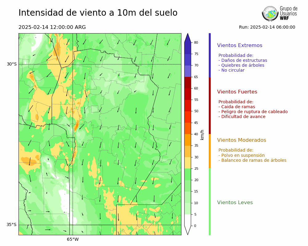 • Intensidad máxima: 18.93 km/h (14/02/2025 18hs.)