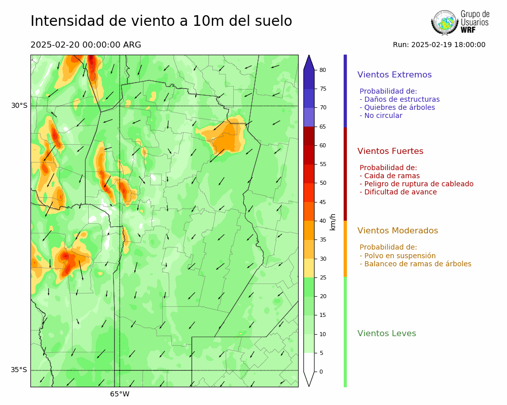 • Intensidad máxima: 15.95 km/h (20/02/2025 11hs.)
