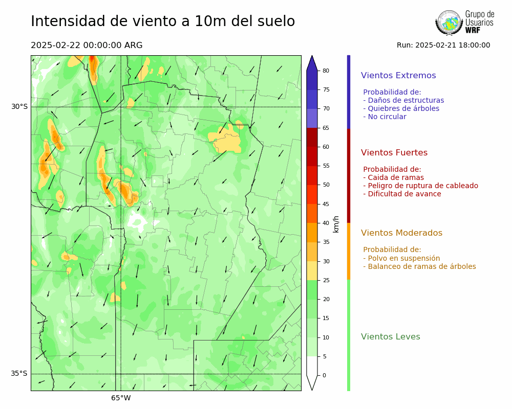 • Intensidad máxima: 6.80 km/h (24/02/2025 00hs.)