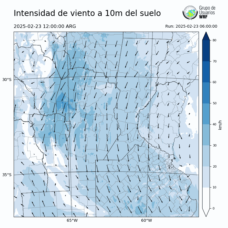 • Intensidad máxima: 6.49 km/h (23/02/2025 23hs.)