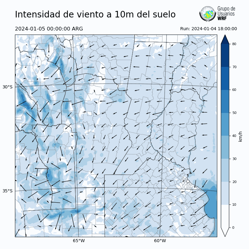 • Intensidad máxima: 12.94 km/h (05/01/2024 11hs.)