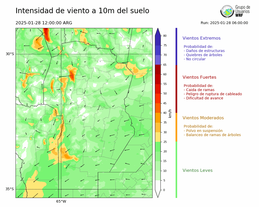 • Intensidad máxima: 13.10 km/h (28/01/2025 23hs.)