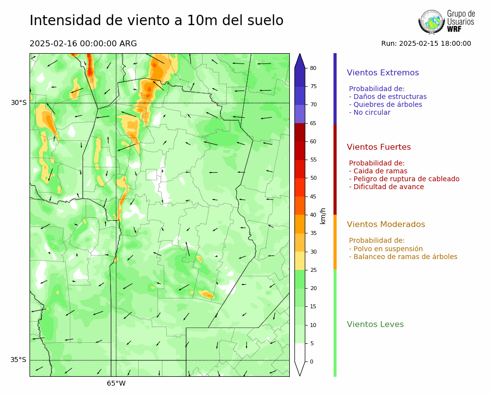 • Intensidad máxima: 16.04 km/h (16/02/2025 10hs.)