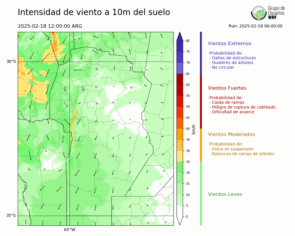 • Intensidad máxima: 18.09 km/h (18/02/2025 16hs.)