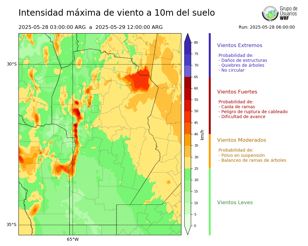 • Intensidad máxima: 12.08 km/h (28/05/2025 12hs.)