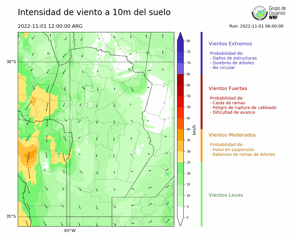 • Intensidad máxima: 12.88 km/h (02/11/2022 06hs.)