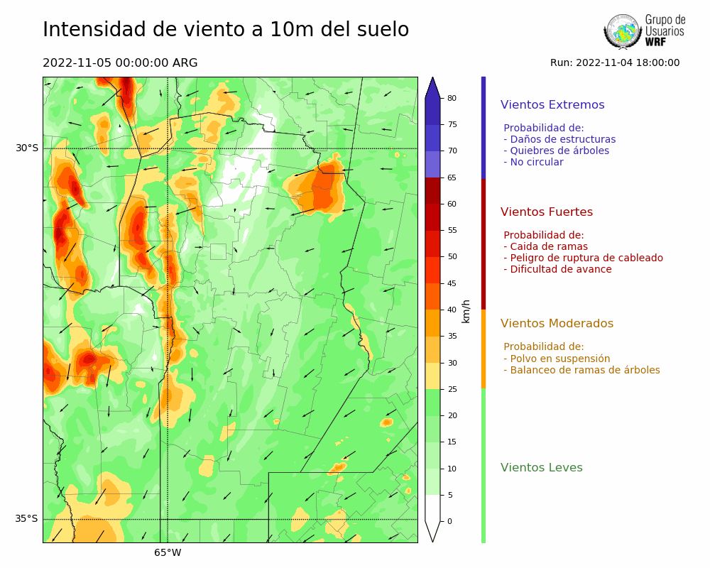 • Intensidad máxima: 8.48 km/h (05/11/2022 00hs.)