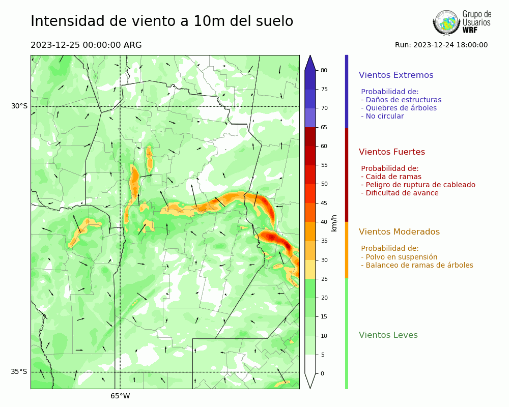 • Intensidad máxima: 22.84 km/h (25/12/2023 11hs.)