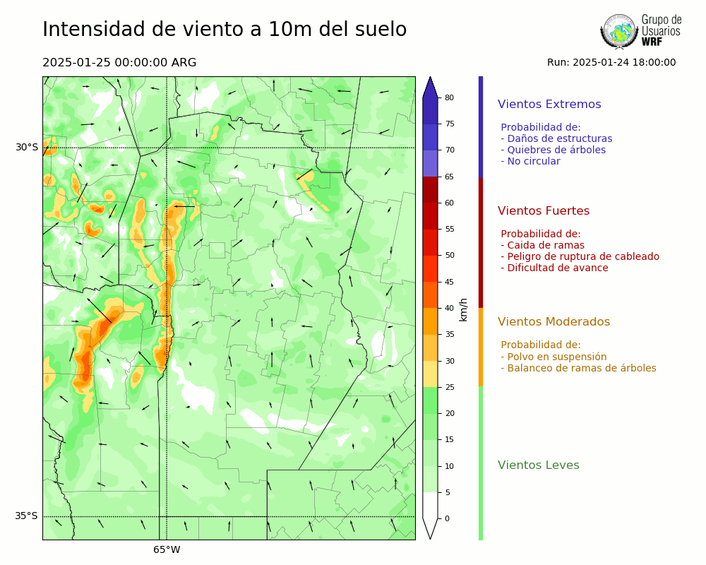 • Intensidad máxima: 12.69 km/h (25/01/2025 11hs.)