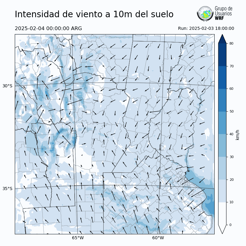 • Intensidad máxima: 13.75 km/h (04/02/2025 09hs.)