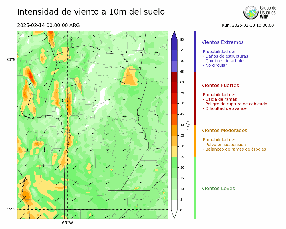 • Intensidad máxima: 21.42 km/h (14/02/2025 11hs.)
