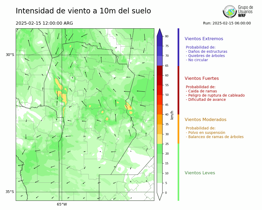 • Intensidad máxima: 7.90 km/h (17/02/2025 03hs.)
