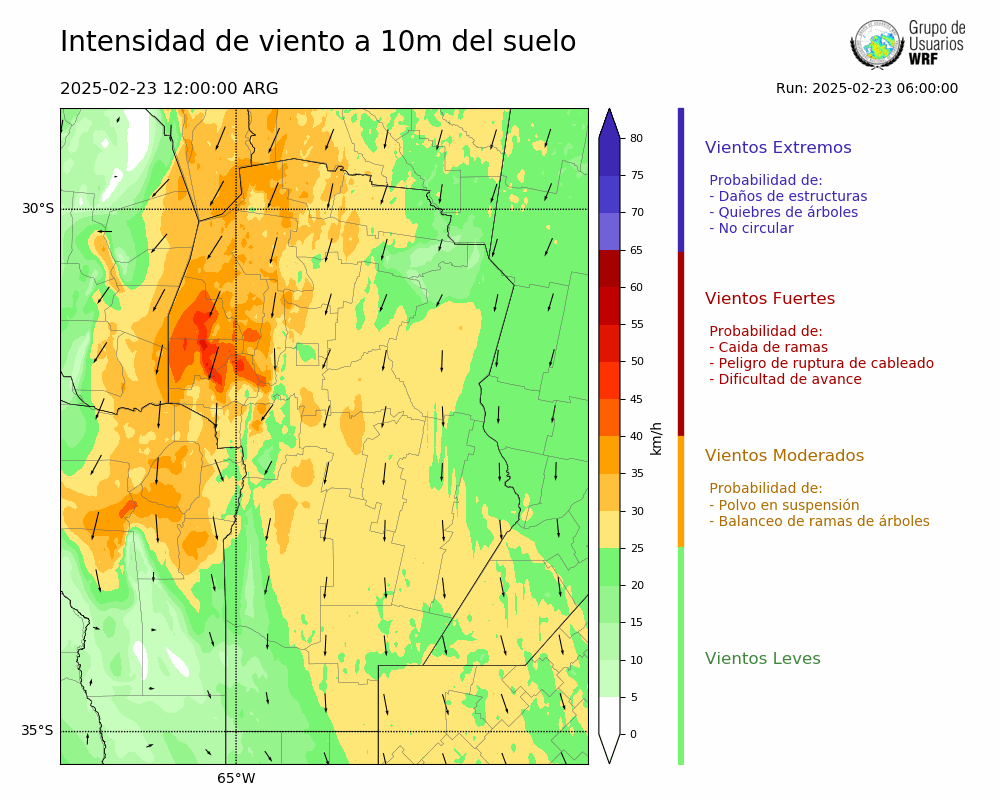 • Intensidad máxima: 8.03 km/h (23/02/2025 23hs.)