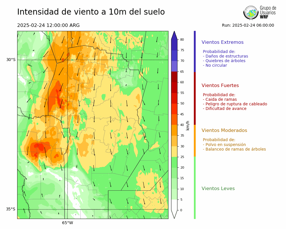 • Intensidad máxima: 27.01 km/h (24/02/2025 12hs.)