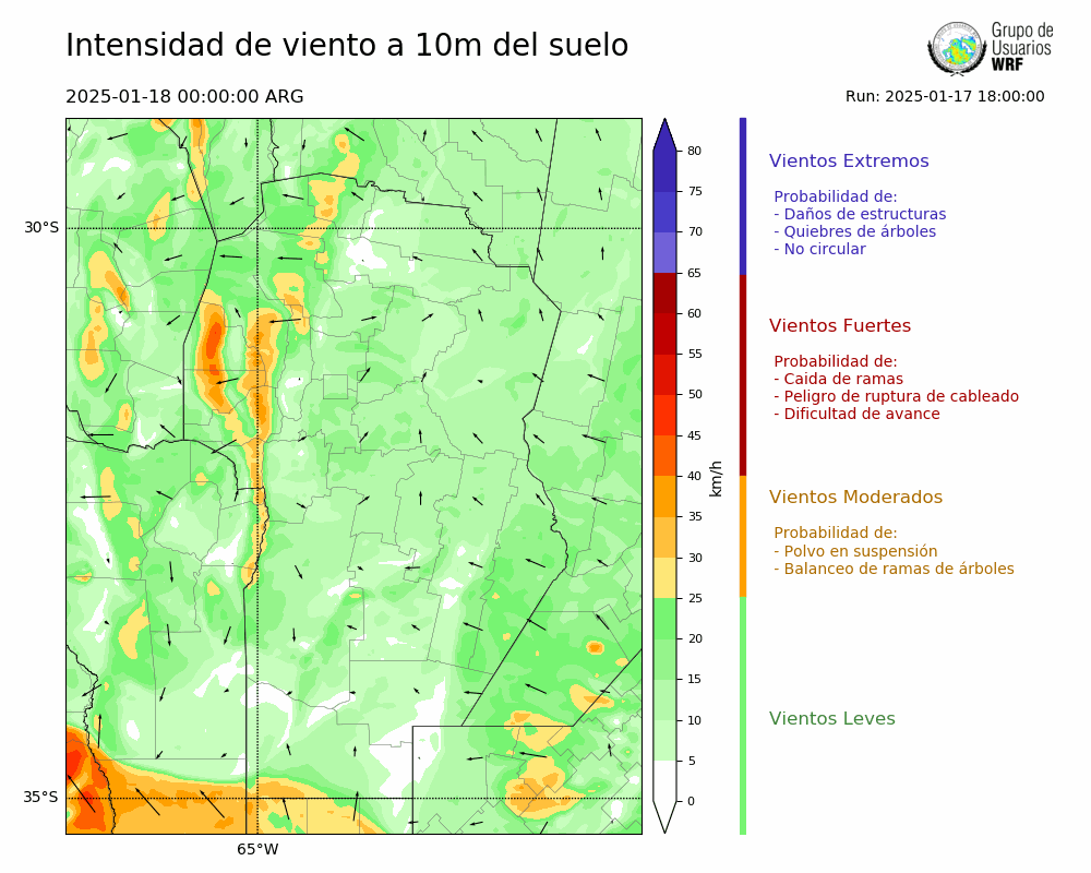 • Intensidad máxima: 6.74 km/h (18/01/2025 05hs.)