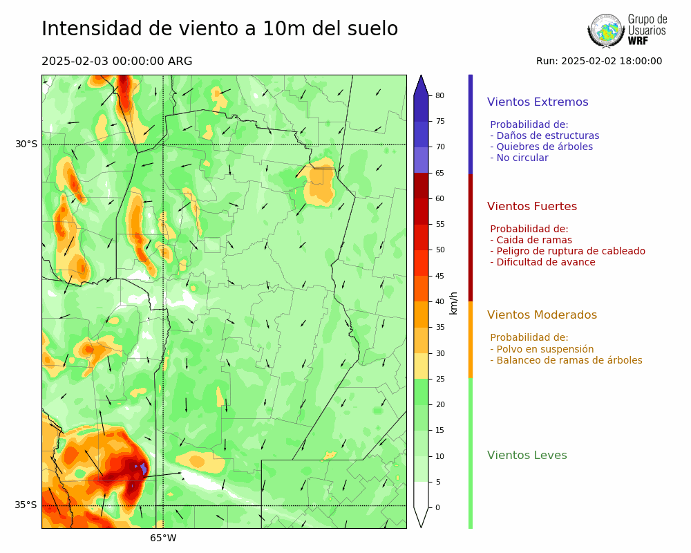• Intensidad máxima: 20.22 km/h (03/02/2025 11hs.)