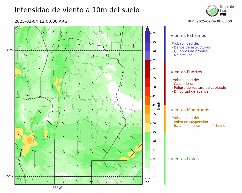 • Intensidad máxima: 13.38 km/h (04/02/2025 22hs.)