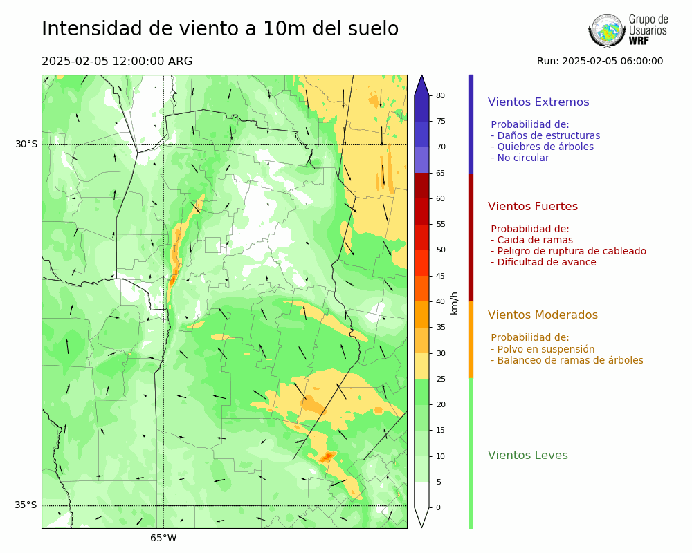 • Intensidad máxima: 21.55 km/h (05/02/2025 18hs.)