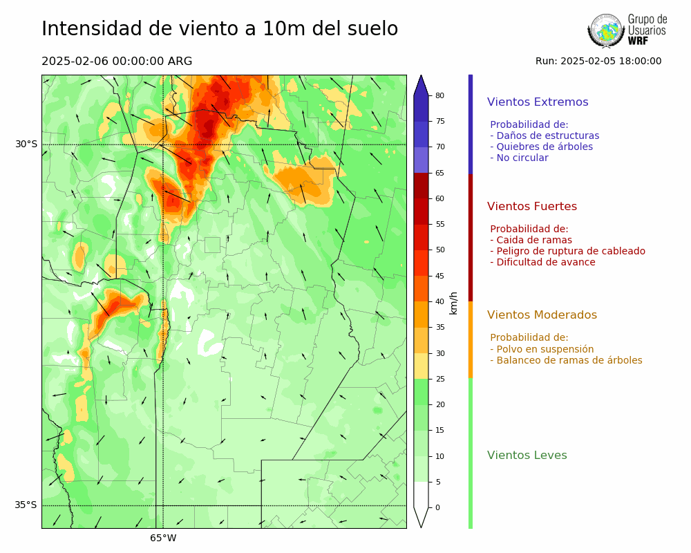 • Intensidad máxima: 7.98 km/h (06/02/2025 11hs.)