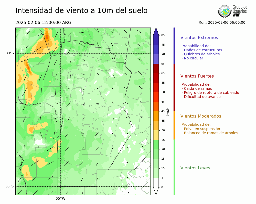 • Intensidad máxima: 12.06 km/h (08/02/2025 03hs.)