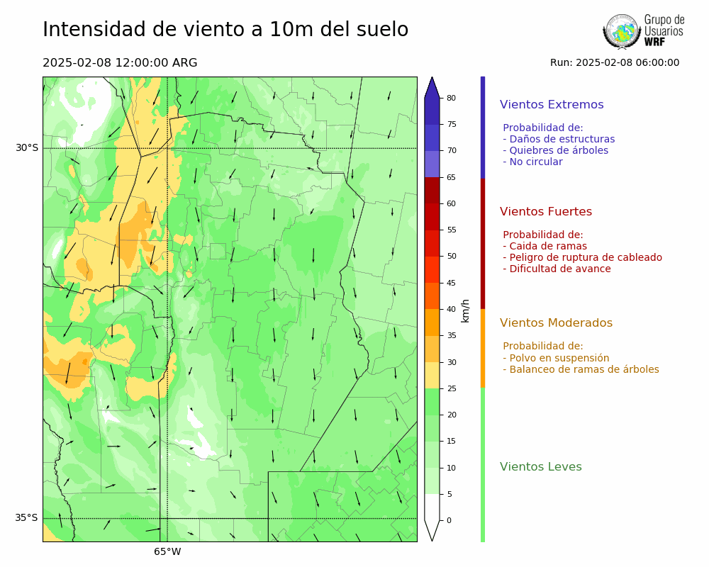 • Intensidad máxima: 16.96 km/h (08/02/2025 12hs.)