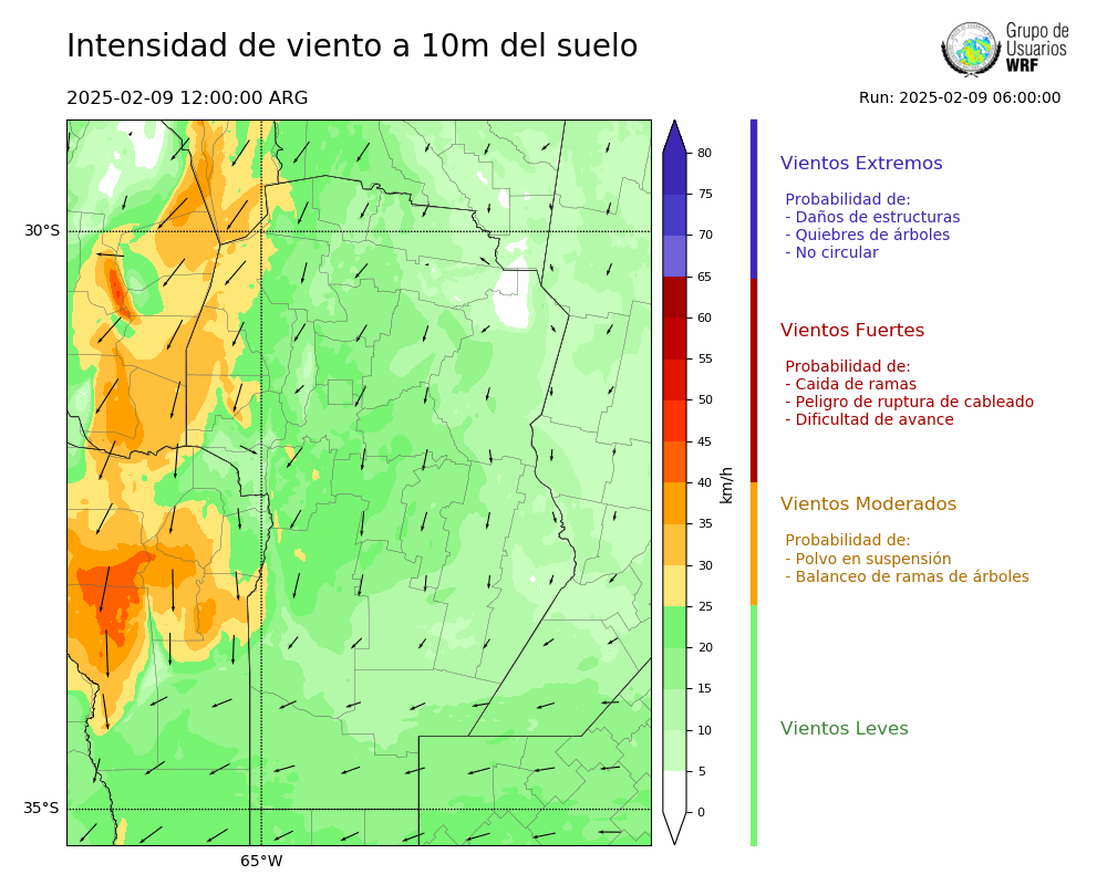 • Intensidad máxima: 13.02 km/h (09/02/2025 23hs.)