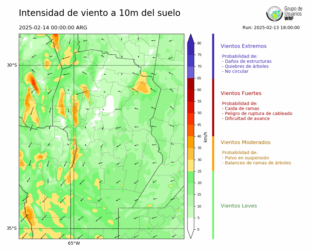 • Intensidad máxima: 5.19 km/h (14/02/2025 00hs.)