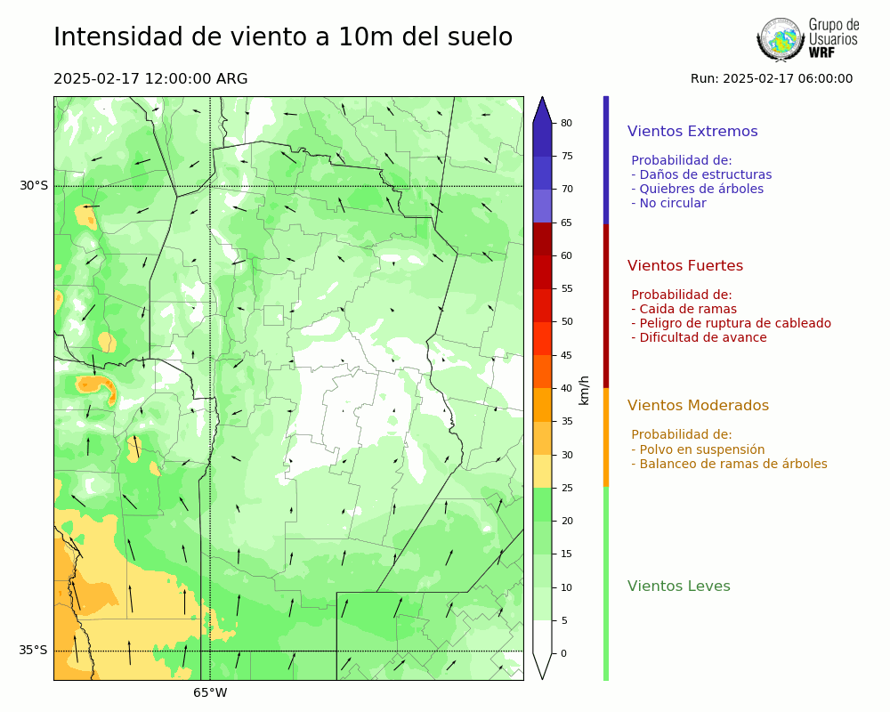• Intensidad máxima: 26.68 km/h (17/02/2025 19hs.)