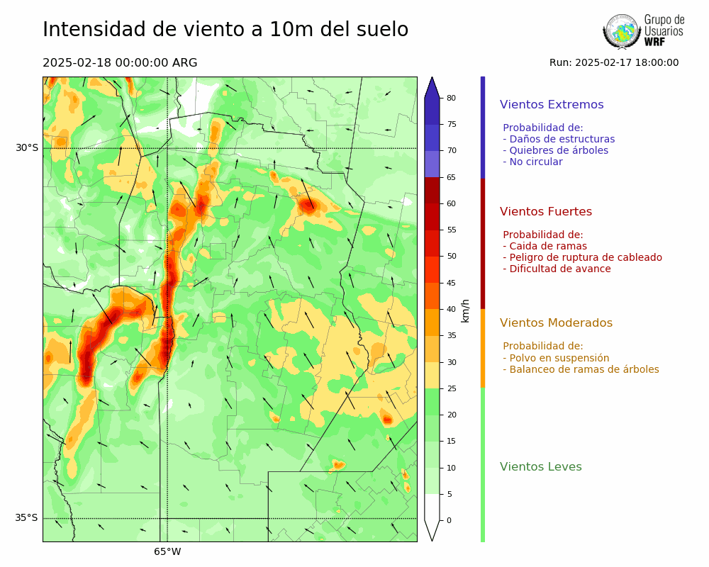 • Intensidad máxima: 7.52 km/h (18/02/2025 23hs.)