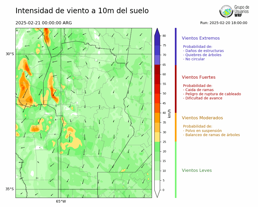 • Intensidad máxima: 17.68 km/h (21/02/2025 09hs.)