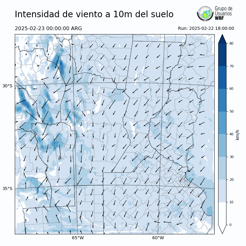 • Intensidad máxima: 30.03 km/h (23/02/2025 11hs.)