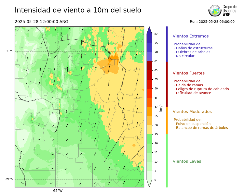 • Intensidad máxima: 12.09 km/h (28/05/2025 12hs.)