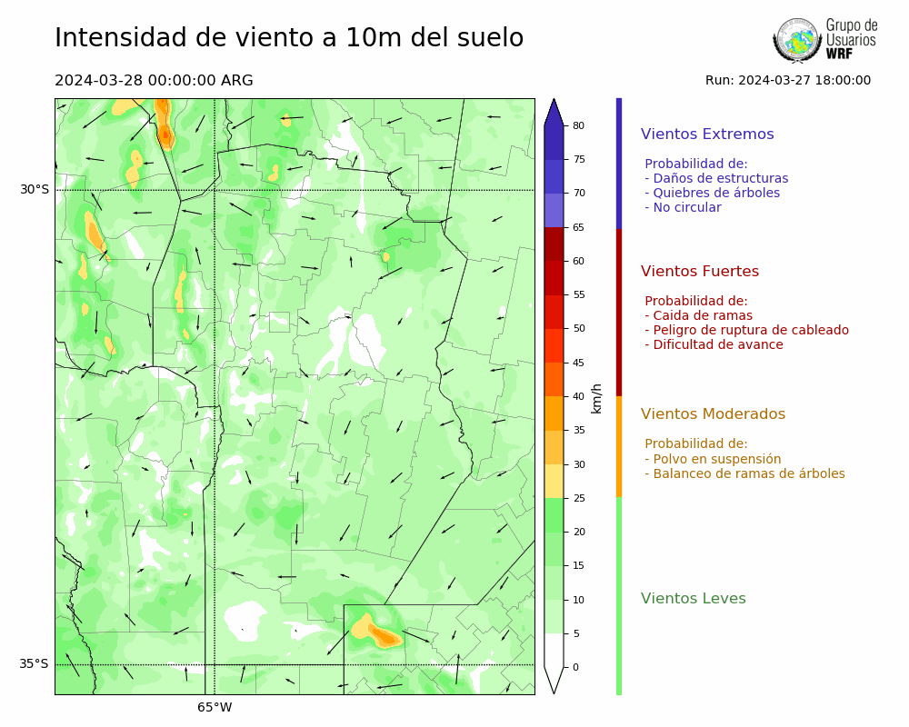• Intensidad máxima: 9.19 km/h (30/03/2024 10hs.)
