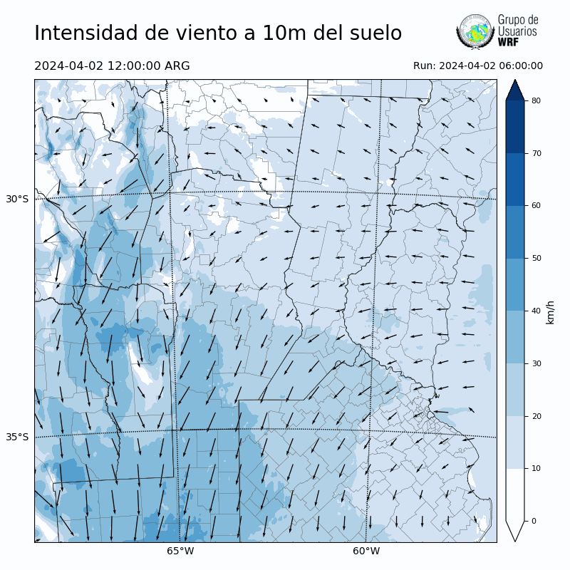 • Intensidad máxima: 5.65 km/h (03/04/2024 08hs.)