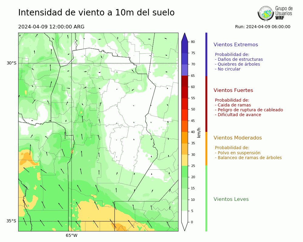 • Intensidad máxima: 8.56 km/h (09/04/2024 17hs.)
