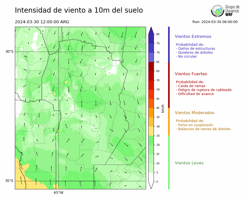 • Intensidad máxima: 16.81 km/h (30/03/2024 15hs.)