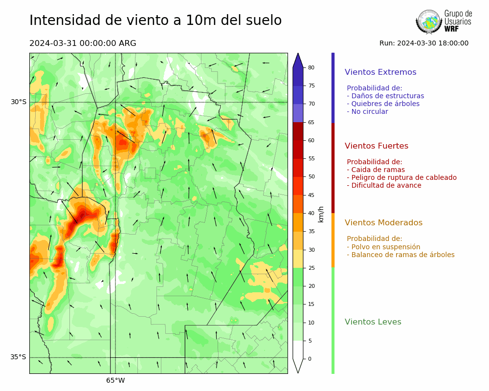 • Intensidad máxima: 28.05 km/h (31/03/2024 02hs.)