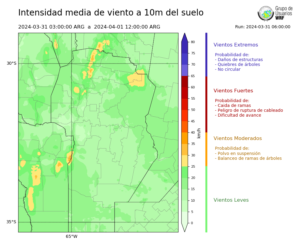 • Intensidad máxima: 12.31 km/h (31/03/2024 17hs.)