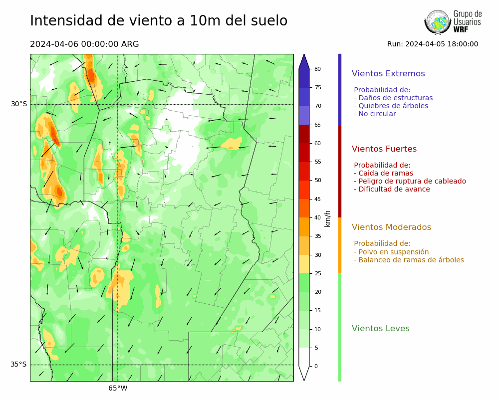 • Intensidad máxima: 13.55 km/h (06/04/2024 10hs.)